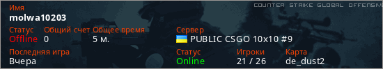 Играет на Counter Strike Global Offensive сервере. Страна: УкраинаПервый раз замечен 19:54 06.03.2026