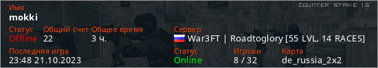 Играет на Counter Strike 1.6 сервере. Страна: РоссияПервый раз замечен 06:13 14.04.2021
