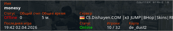 Играет на Counter Strike 1.6 сервере. Страна: ГерманияПервый раз замечен 19:38 02.04.2026