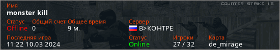 Играет на Counter Strike 1.6 сервере. Страна: РоссияПервый раз замечен 20:30 09.03.2024