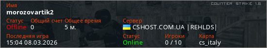 Играет на Counter Strike 1.6 сервере. Страна: УкраинаПервый раз замечен 15:00 08.03.2026