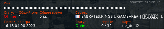 Последний раз был в сети 16:18 04.08.2023 Игрок с таким ником замечен на 15 серверах