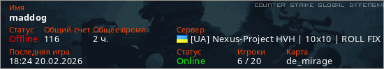 Играет на Counter Strike Global Offensive сервере. Страна: УкраинаПервый раз замечен 22:19 04.02.2026