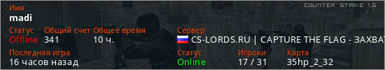 Играет на Counter Strike 1.6 сервере. Страна: РоссияПервый раз замечен 02:13 01.10.2021