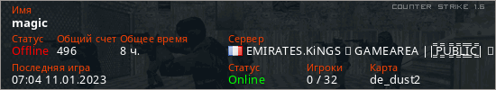 Последний раз был в сети 07:04 11.01.2023 Игрок с таким ником замечен на 14 серверах
