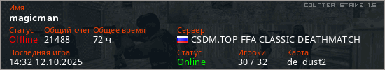 Последний раз был в сети 14:32 12.10.2025 Игрок с таким ником замечен на 3 серверах