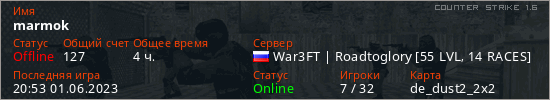Играет на Counter Strike 1.6 сервере. Страна: РоссияПервый раз замечен 08:56 10.01.2021