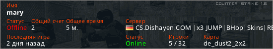 Последний раз был в сети 2 дня назад Игрок с таким ником замечен на 15 серверах