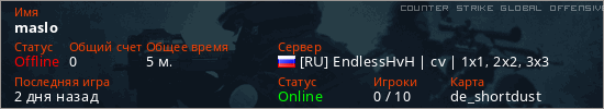 Играет на Counter Strike Global Offensive сервере. Страна: РоссияПервый раз замечен 19:05 10.12.2025