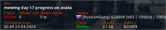 Играет на Counter Strike Source сервере. Страна: РоссияПервый раз замечен 02:43 23.03.2024