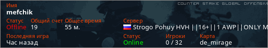 Играет на Counter Strike Global Offensive сервере. Страна: РоссияПервый раз замечен 05:50 19.01.2026
