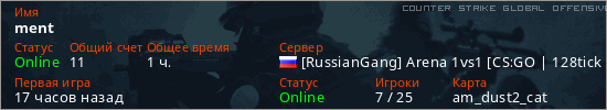 Играет на Counter Strike Global Offensive сервере. Страна: РоссияПервый раз замечен 08:15 08.12.2025