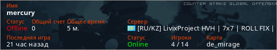 Играет на Counter Strike Global Offensive сервере. Страна: КазахстанПервый раз замечен 21:14 17.12.2025