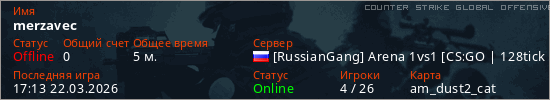 Играет на Counter Strike Global Offensive сервере. Страна: РоссияПервый раз замечен 16:56 22.03.2026