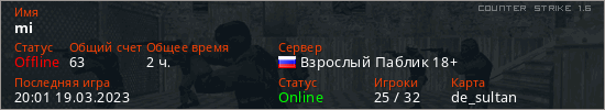 Последний раз был в сети 20:01 19.03.2023 Игрок с таким ником замечен на 21 сервере