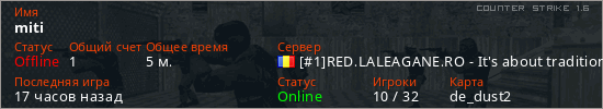 Играет на Counter Strike 1.6 сервере. Страна: РумынияПервый раз замечен 18:19 06.02.2026