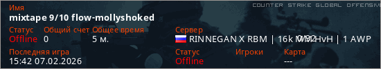 Играет на Counter Strike Global Offensive сервере. Страна: РоссияПервый раз замечен 15:25 07.02.2026