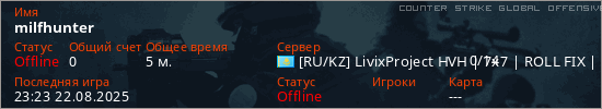 Играет на Counter Strike Global Offensive сервере. Страна: КазахстанПервый раз замечен 22:59 22.08.2025