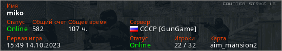 Играет на Counter Strike 1.6 сервере. Страна: РоссияПервый раз замечен 15:49 14.10.2023