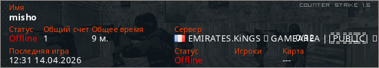Играет на Counter Strike 1.6 сервере. Страна: ФранцияПервый раз замечен 12:20 14.04.2026