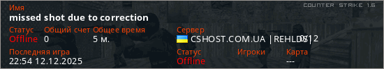 Играет на Counter Strike 1.6 сервере. Страна: УкраинаПервый раз замечен 22:52 12.12.2025