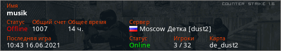 Играет на Counter Strike 1.6 сервере. Страна: РоссияПервый раз замечен 10:42 18.11.2020