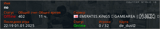 Играет на Counter Strike 1.6 сервере. Страна: ВеликобританияПервый раз замечен 02:02 06.01.2021