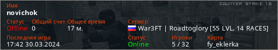 Последний раз был в сети 17:42 30.03.2024 Игрок с таким ником замечен на 24 серверах