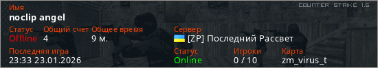 Играет на Counter Strike 1.6 сервере. Страна: УкраинаПервый раз замечен 23:25 23.01.2026