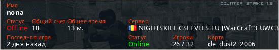 Последний раз был в сети 2 дня назад Игрок с таким ником замечен на 8 серверах