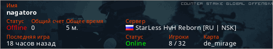 Последний раз был в сети 17 часов назад Игрок с таким ником замечен на 6 серверах