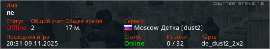 Последний раз был в сети 20:31 09.11.2025 Игрок с таким ником замечен на 23 серверах