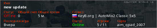 Последний раз был в сети Вчера Игрок с таким ником замечен на 5 серверах