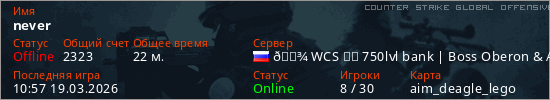 Играет на Counter Strike Global Offensive сервере. Страна: РоссияПервый раз замечен 14:56 17.03.2026