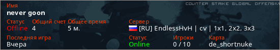 Играет на Counter Strike Global Offensive сервере. Страна: РоссияПервый раз замечен 16:10 06.12.2025