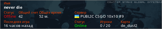 Играет на Counter Strike Global Offensive сервере. Страна: УкраинаПервый раз замечен 11:32 08.03.2026