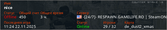 Играет на Counter Strike 1.6 сервере. Страна: СШАПервый раз замечен 19:33 30.01.2025