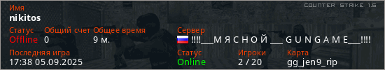 Последний раз был в сети 17:38 05.09.2025 Игрок с таким ником замечен на 28 серверах