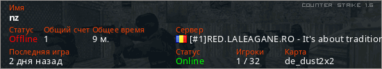 Играет на Counter Strike 1.6 сервере. Страна: РумынияПервый раз замечен 12:40 05.04.2026