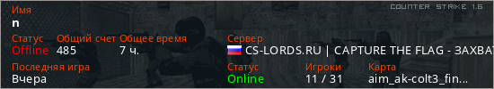 Последний раз был в сети Вчера Игрок с таким ником замечен на 42 серверах