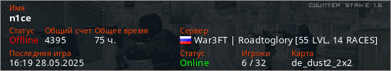 Последний раз был в сети 16:19 28.05.2025 Игрок с таким ником замечен на 21 сервере