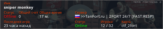 Играет на Team Fortress 2 сервере. Страна: РоссияПервый раз замечен 13:42 05.03.2026