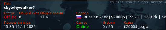 Последний раз был в сети 15:35 16.11.2025 Игрок с таким ником замечен на 11 серверах