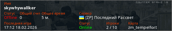 Играет на Counter Strike 1.6 сервере. Страна: УкраинаПервый раз замечен 17:10 18.02.2026