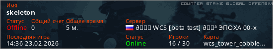 Играет на Counter Strike Global Offensive сервере. Страна: РоссияПервый раз замечен 14:34 23.02.2026