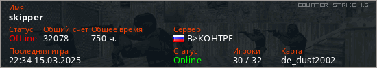 Последний раз был в сети 22:34 15.03.2025 Игрок с таким ником замечен на 15 серверах
