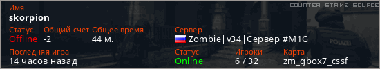 Играет на Counter Strike Source сервере. Страна: РоссияПервый раз замечен 13:22 29.11.2025