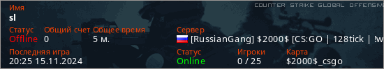 Играет на Counter Strike Global Offensive сервере. Страна: РоссияПервый раз замечен 20:13 15.11.2024