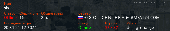 Играет на Counter Strike 1.6 сервере. Страна: РоссияПервый раз замечен 20:31 18.10.2024