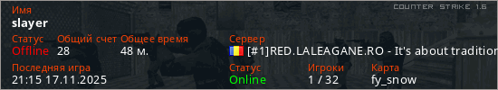 Играет на Counter Strike 1.6 сервере. Страна: РумынияПервый раз замечен 16:49 17.11.2022